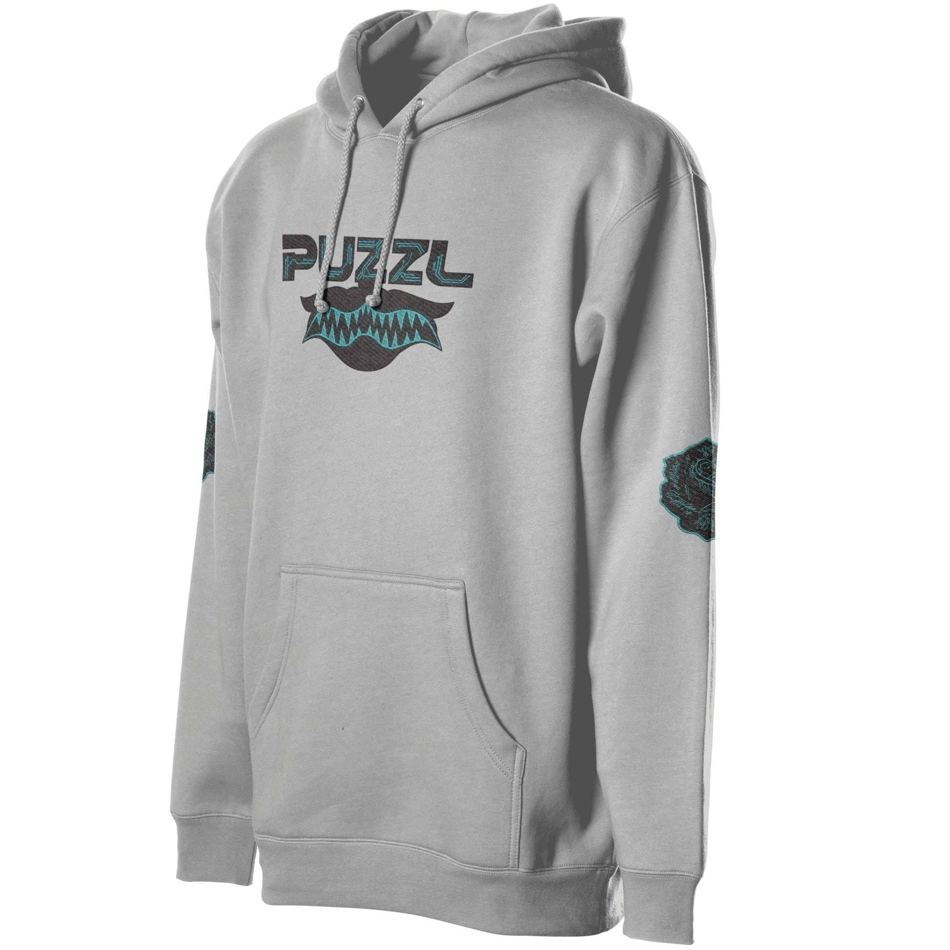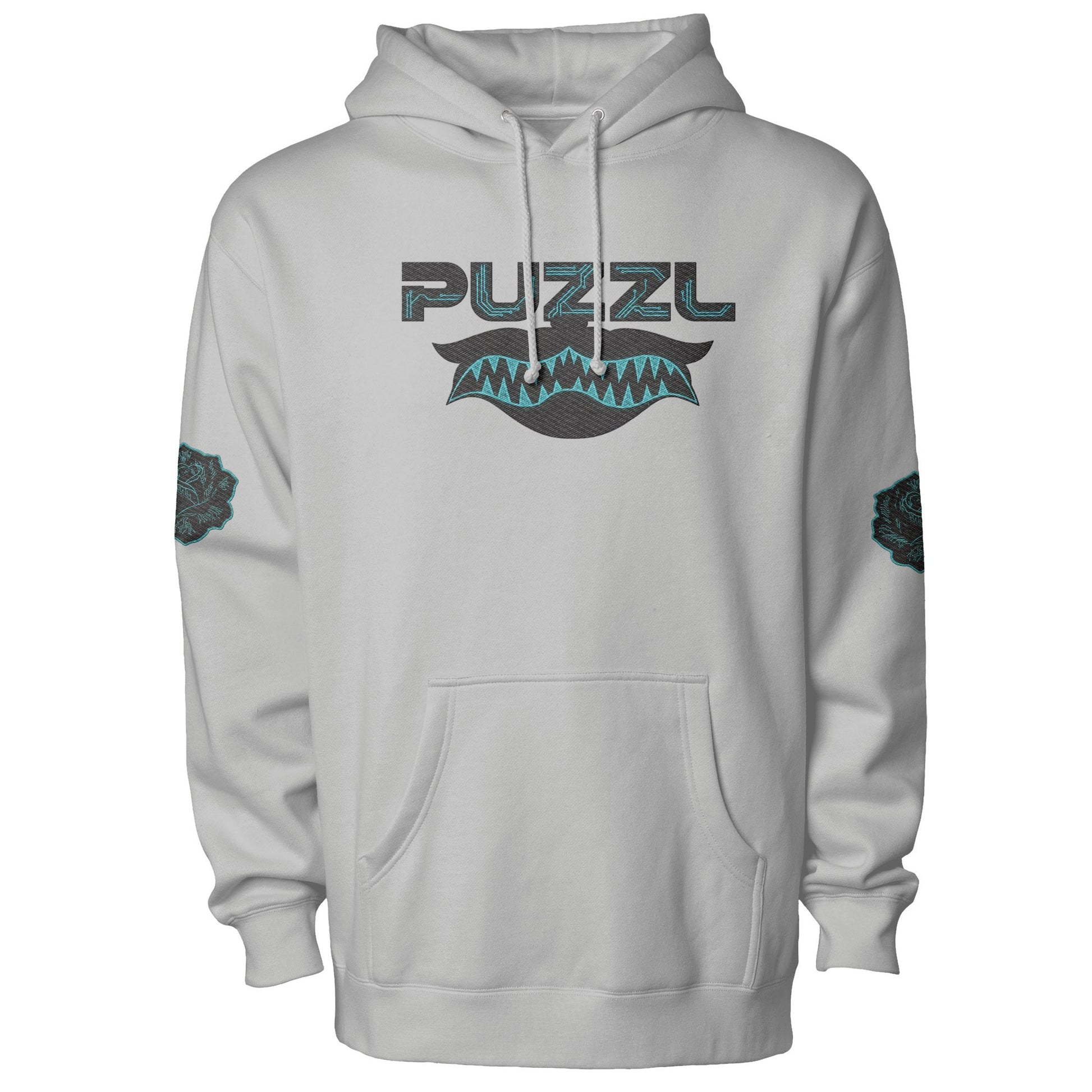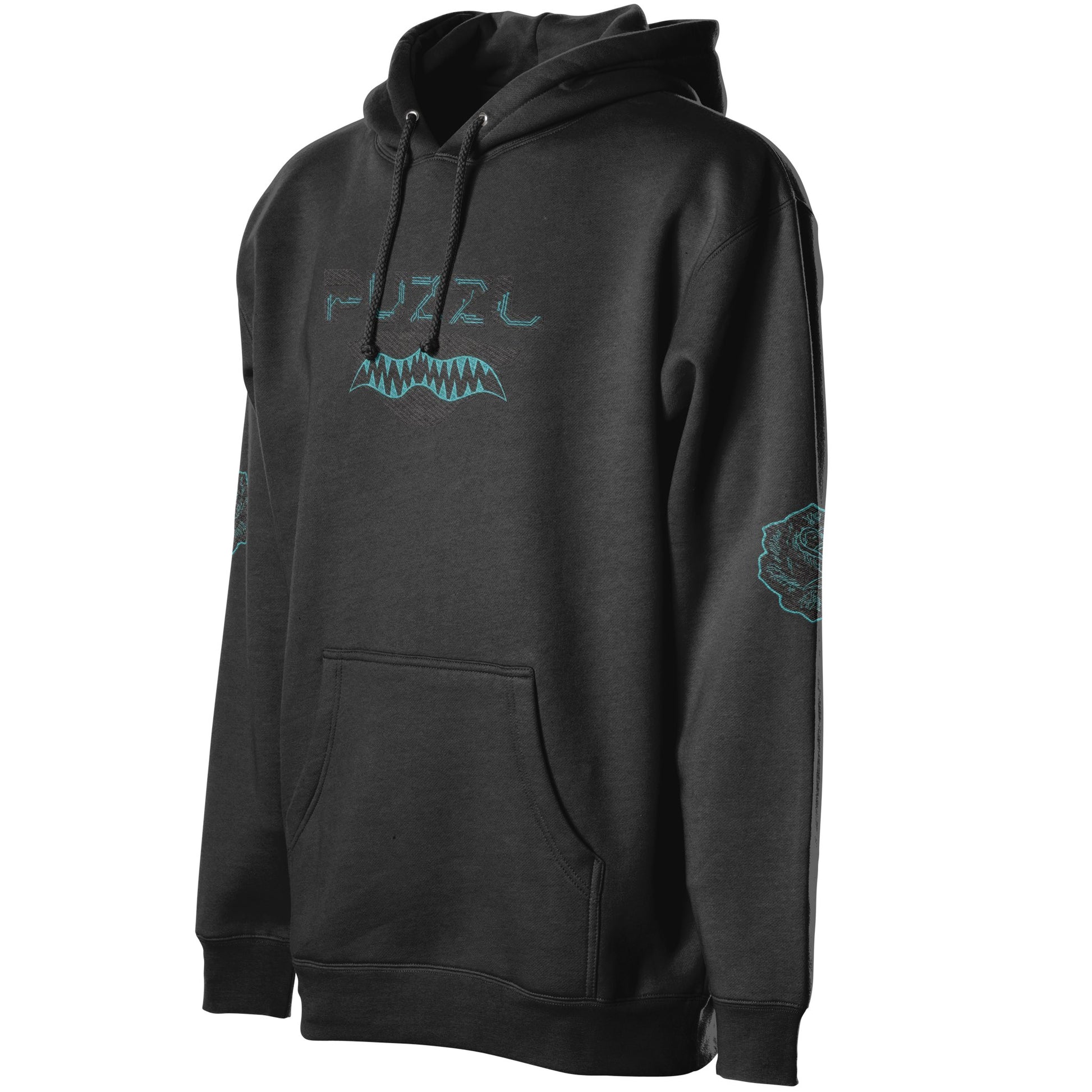 The Circuit Bloom Embroidery pushes the Digital Bloom aesthetic into a futuristic direction. The PUZZL mark sits above a serrated cyber-fang motif, stitched with structural precision, while circuit-wired roses connect the design back to the collection’s floral foundation.
